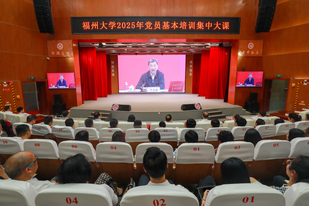为深入学习贯彻习近平新时代中国特色社会主义思想,加强党员党性修养,提升党员教育培训实效,6月5日,福州大学举办2025年党员基本培训第一次集中大课,组织观看由教育部党组书记、部长怀进鹏主讲的《深入学习贯彻习近平总书记关于教育的重要论述,落实全国教育大会精神》专题视频报告。校党委书记陈国龙主持集中大课,省委教育工委相关同志到会指导。全校近1.3万名师生员工党员参加本次集中大课。