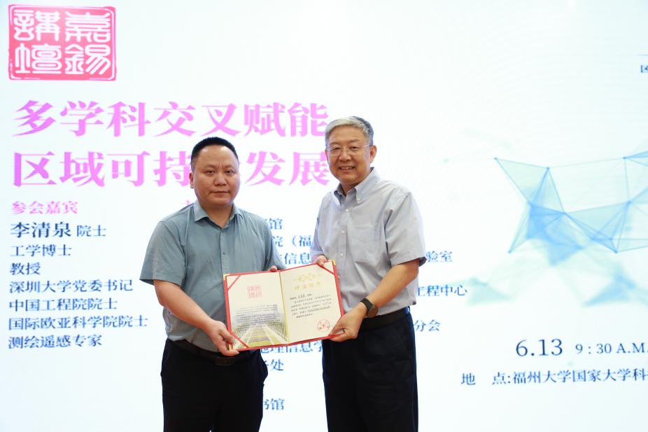 当天上午,李清泉院士以《多学科交叉赋能区域可持续发展》为题,在阳光科技大厦一楼报告厅开展嘉锡讲坛第699期讲座。卢孝强副校长主持活动并向李清泉院士颁发嘉锡讲坛证书。